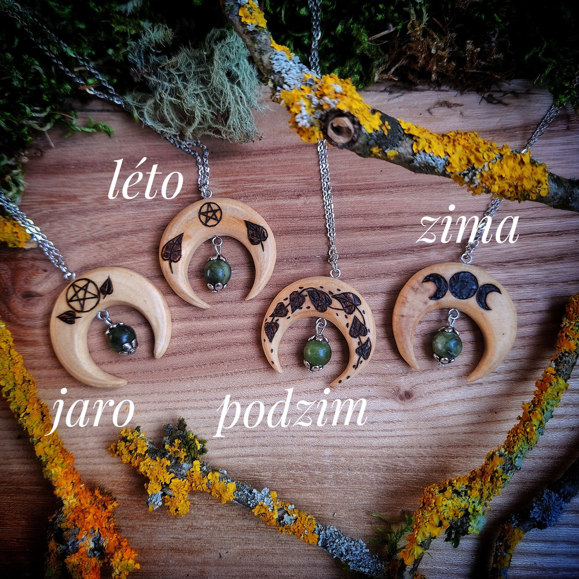 Ručně vyráběné originální šperky převážně z lokálních druhů dřeva. Každý kus byl rituálně očištěn na lesním mechu a nese nezaměnitelnou energii brdských lesů.