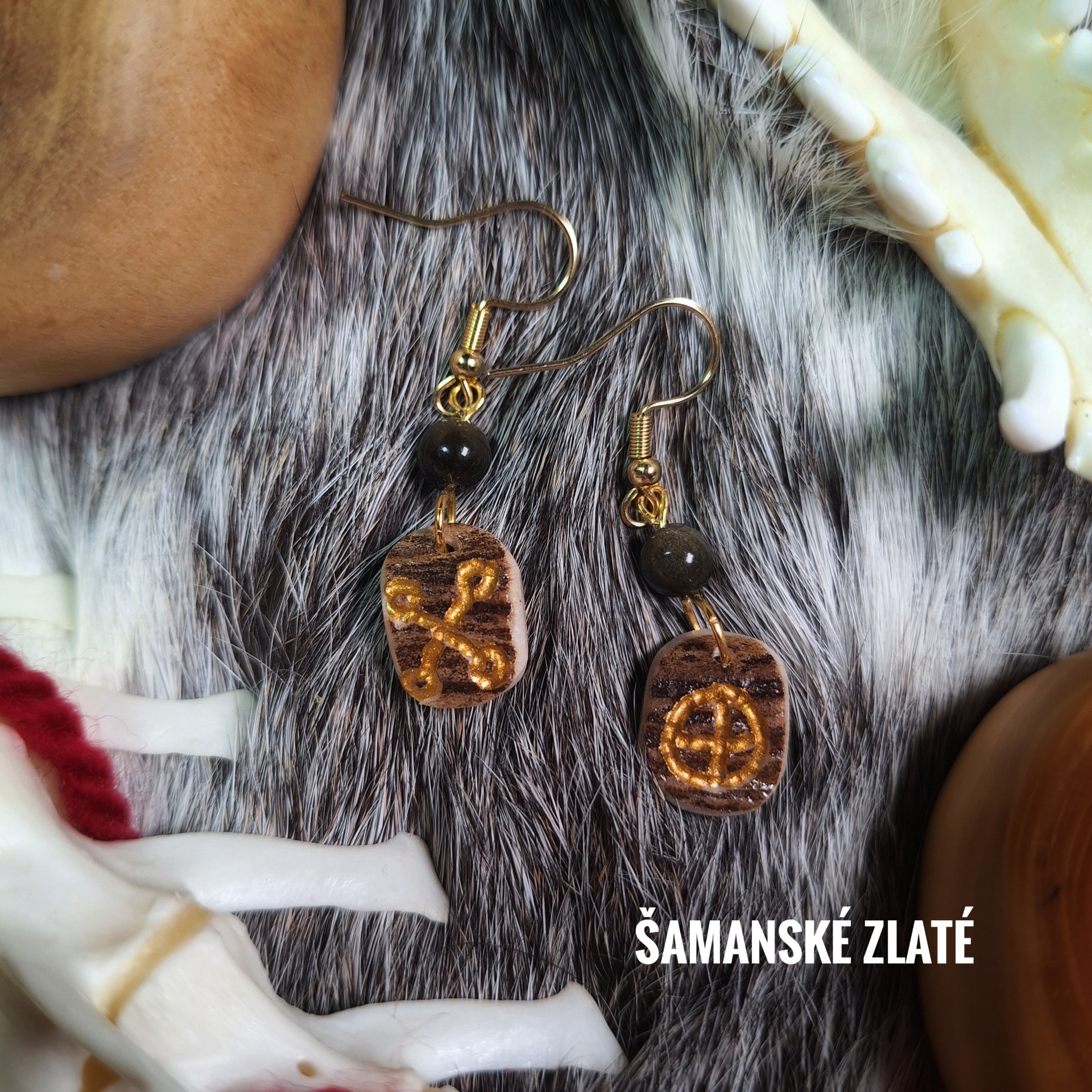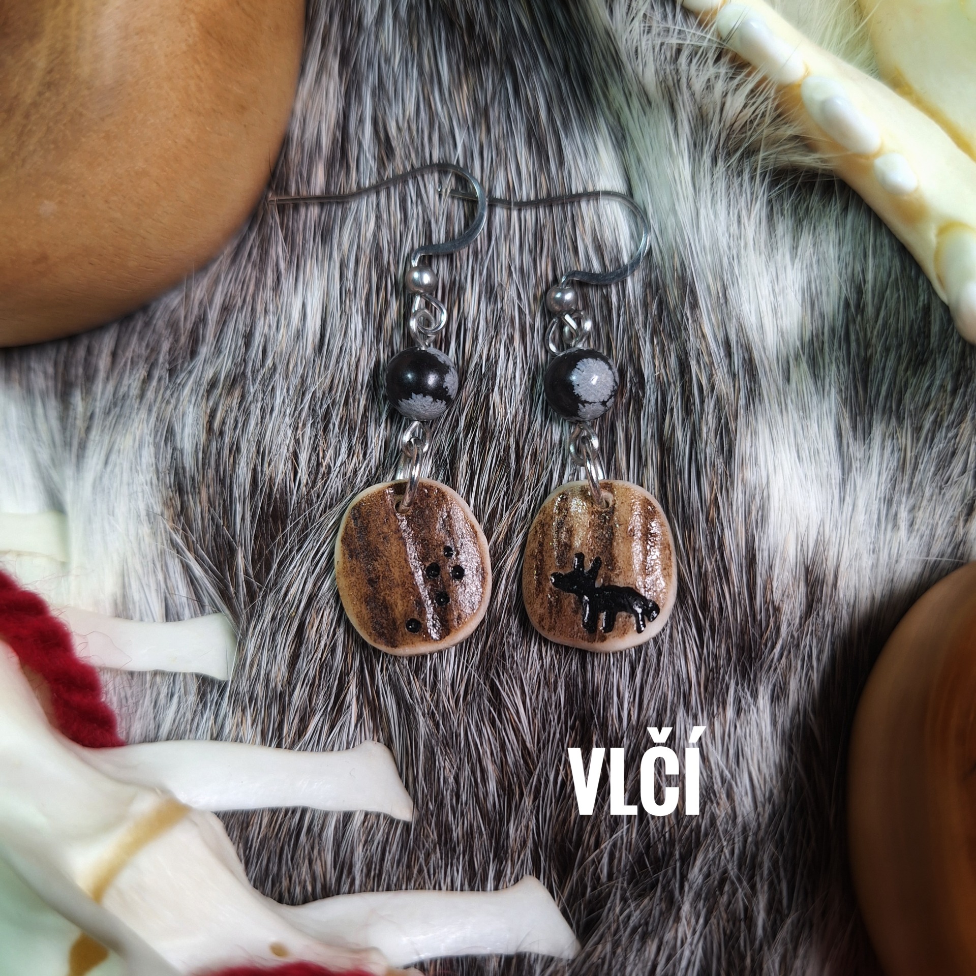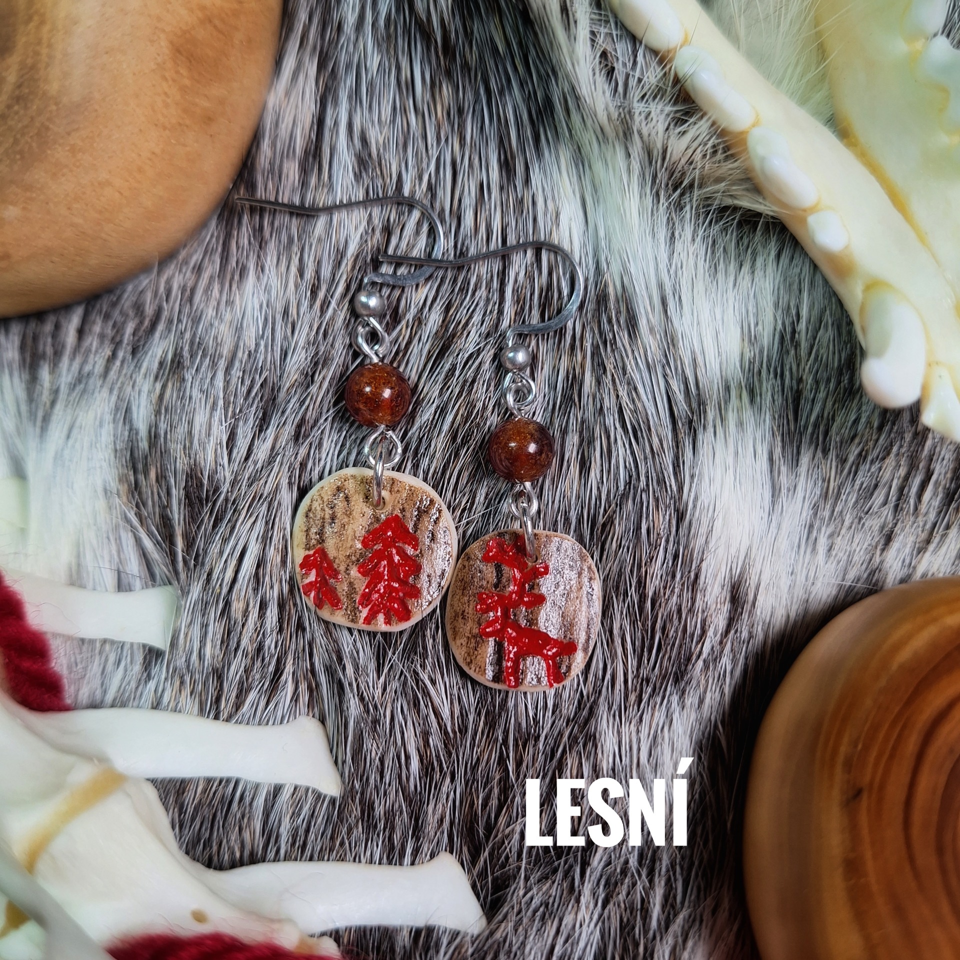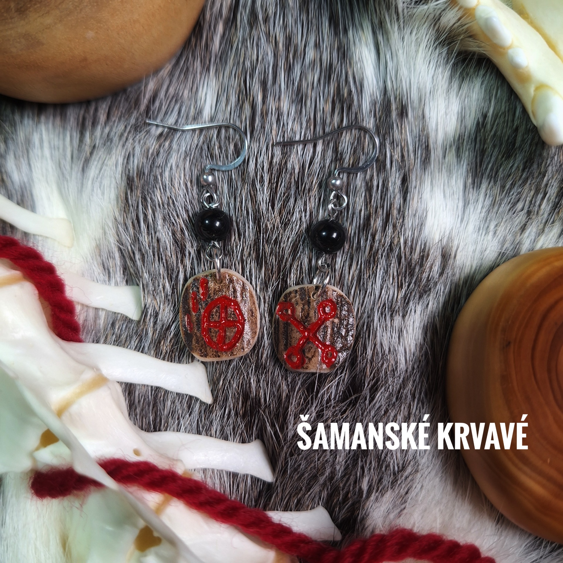 Nášnice z kousků jeleního paroží s gravírováním a barvou