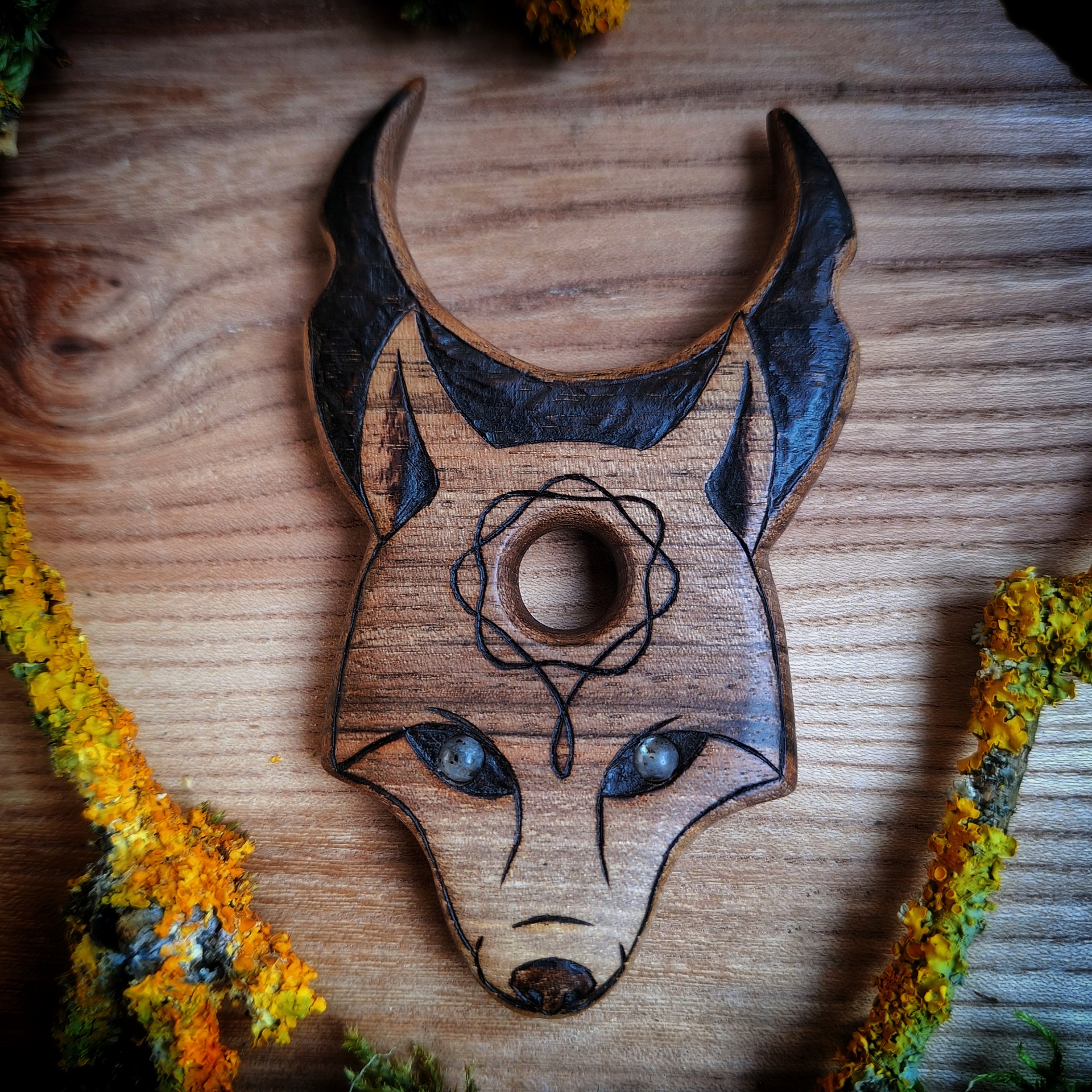 Ručně vyřezaný a zdobený lucet ze dřeva ořešáku se zabroušenými labradority. Motiv je oboustranný, nicméně každá liška má trochu jinou duši...