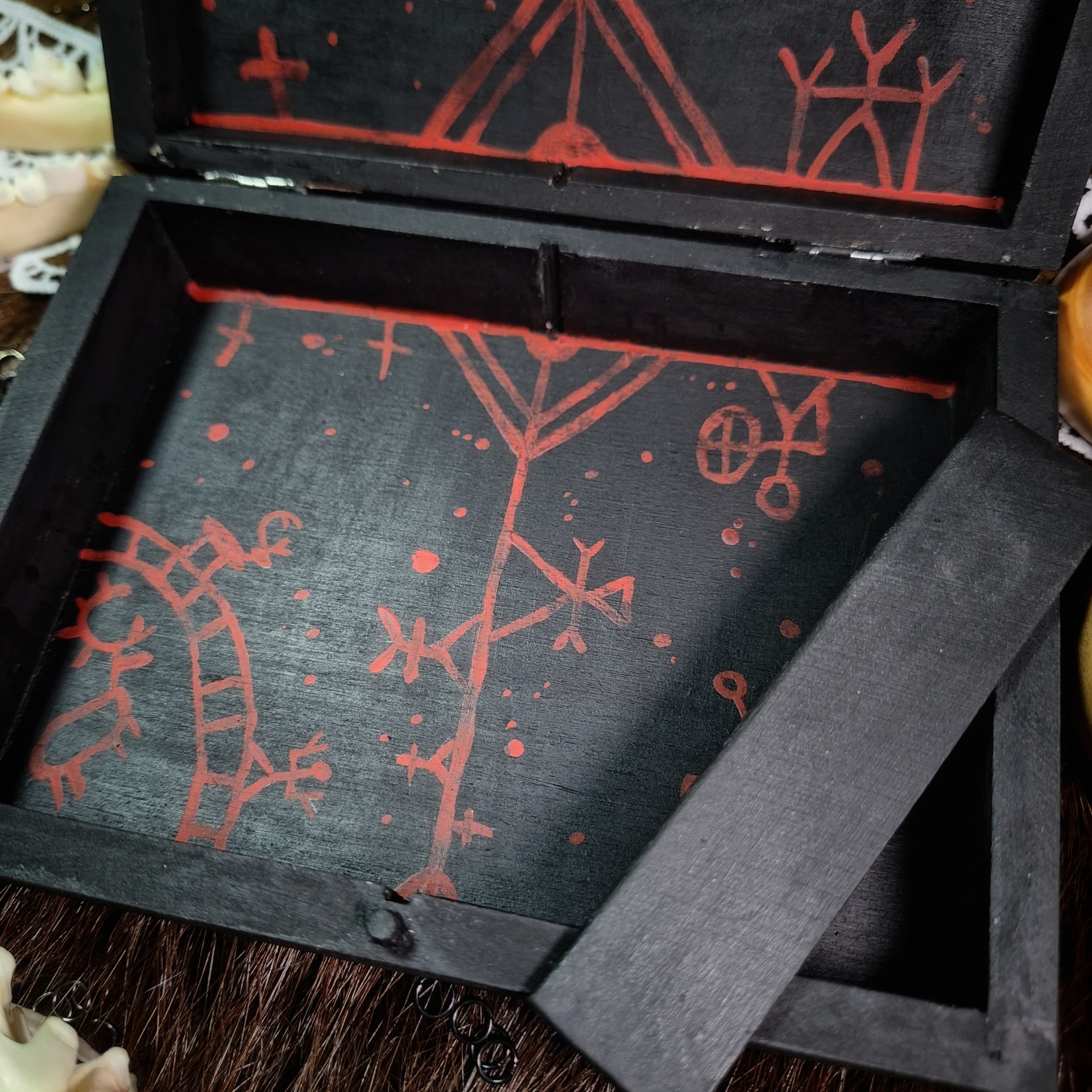 Ručně malovaná krabička z lipového dřeva, s vyndavací přepážkou. Unikát, autorský design.