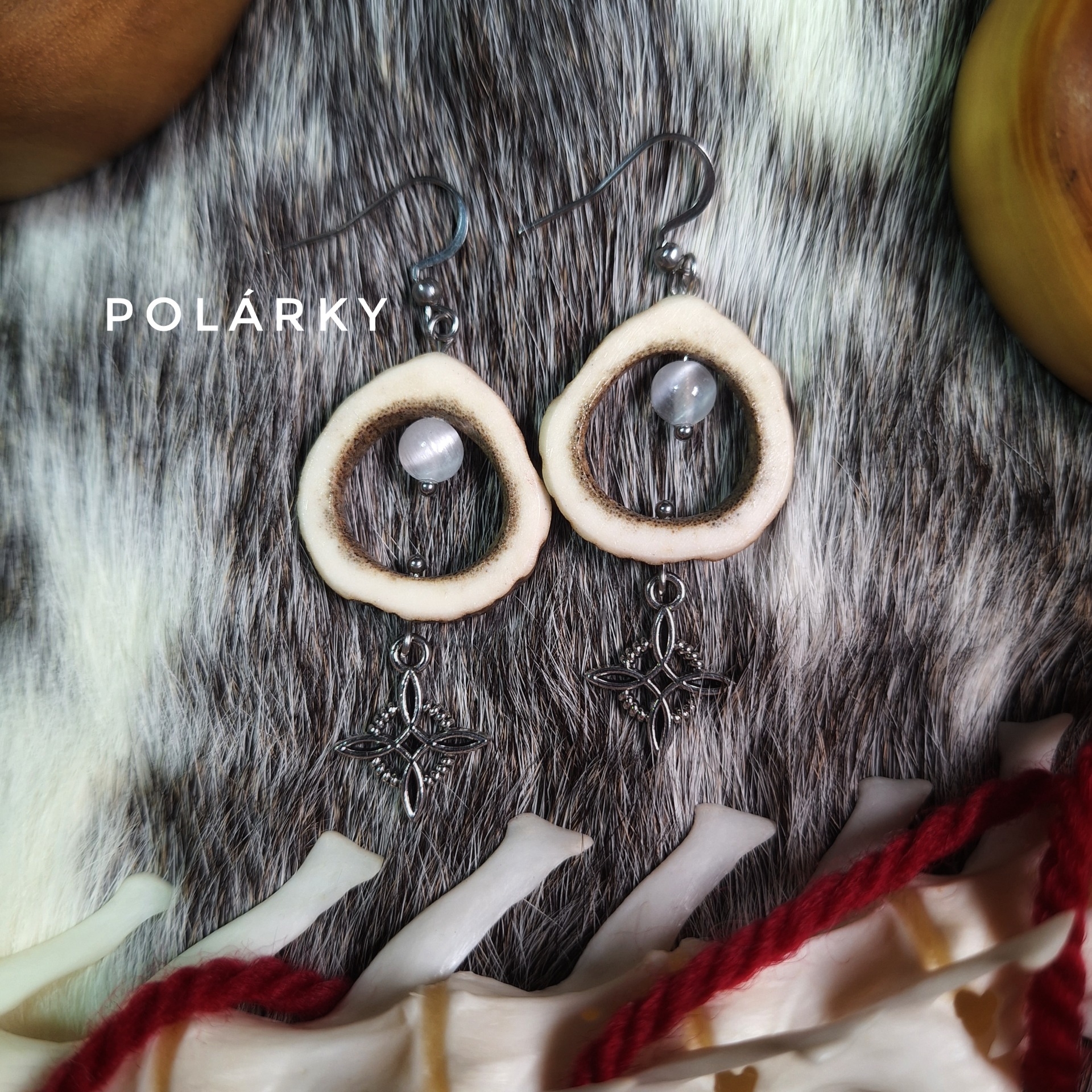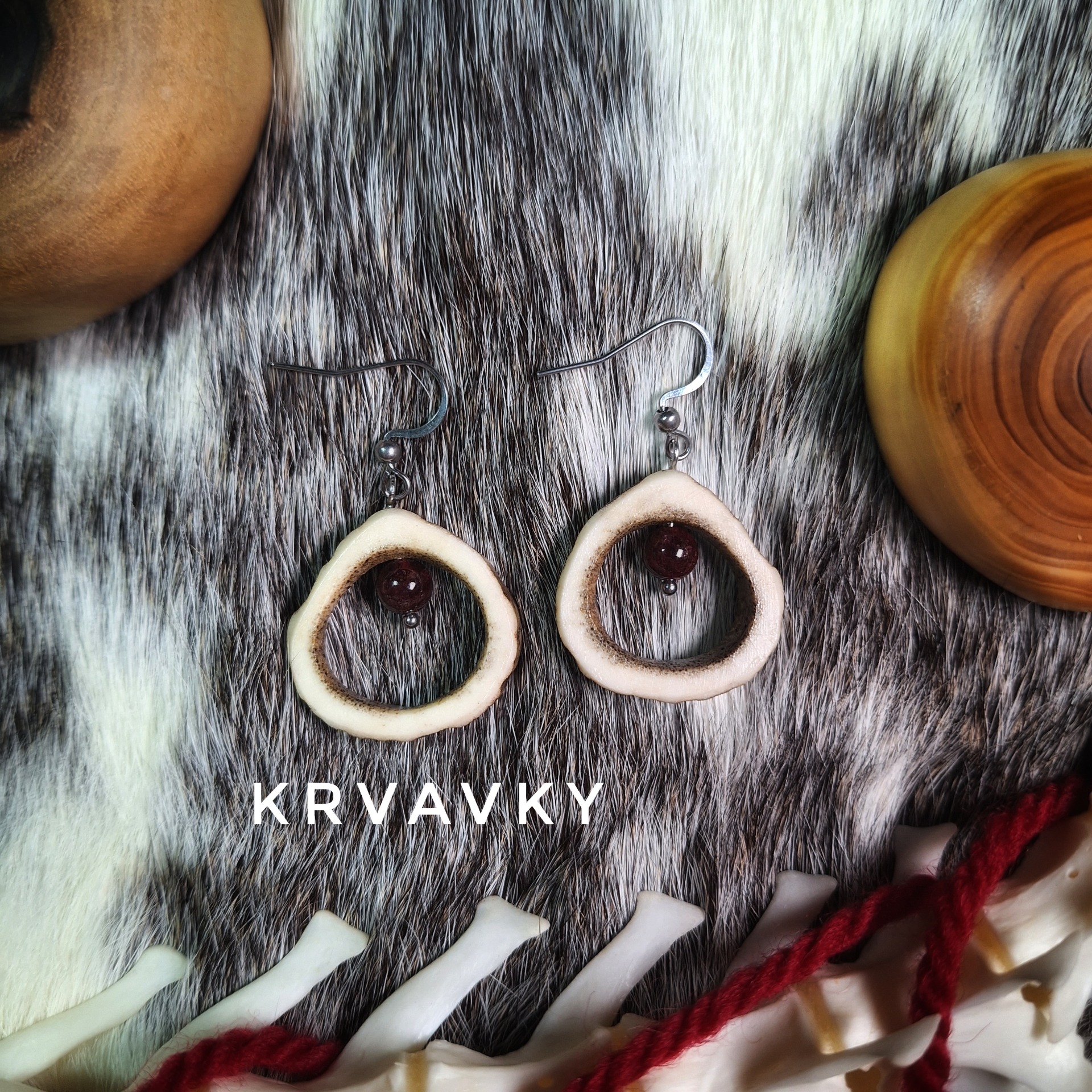 Náušnice z jeleního parohu se selenitem (Polárky) či granátem (Krvavky)